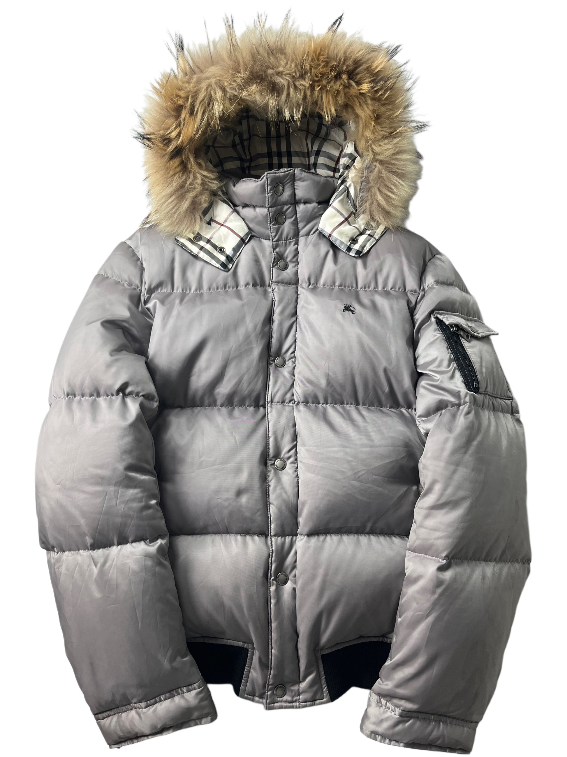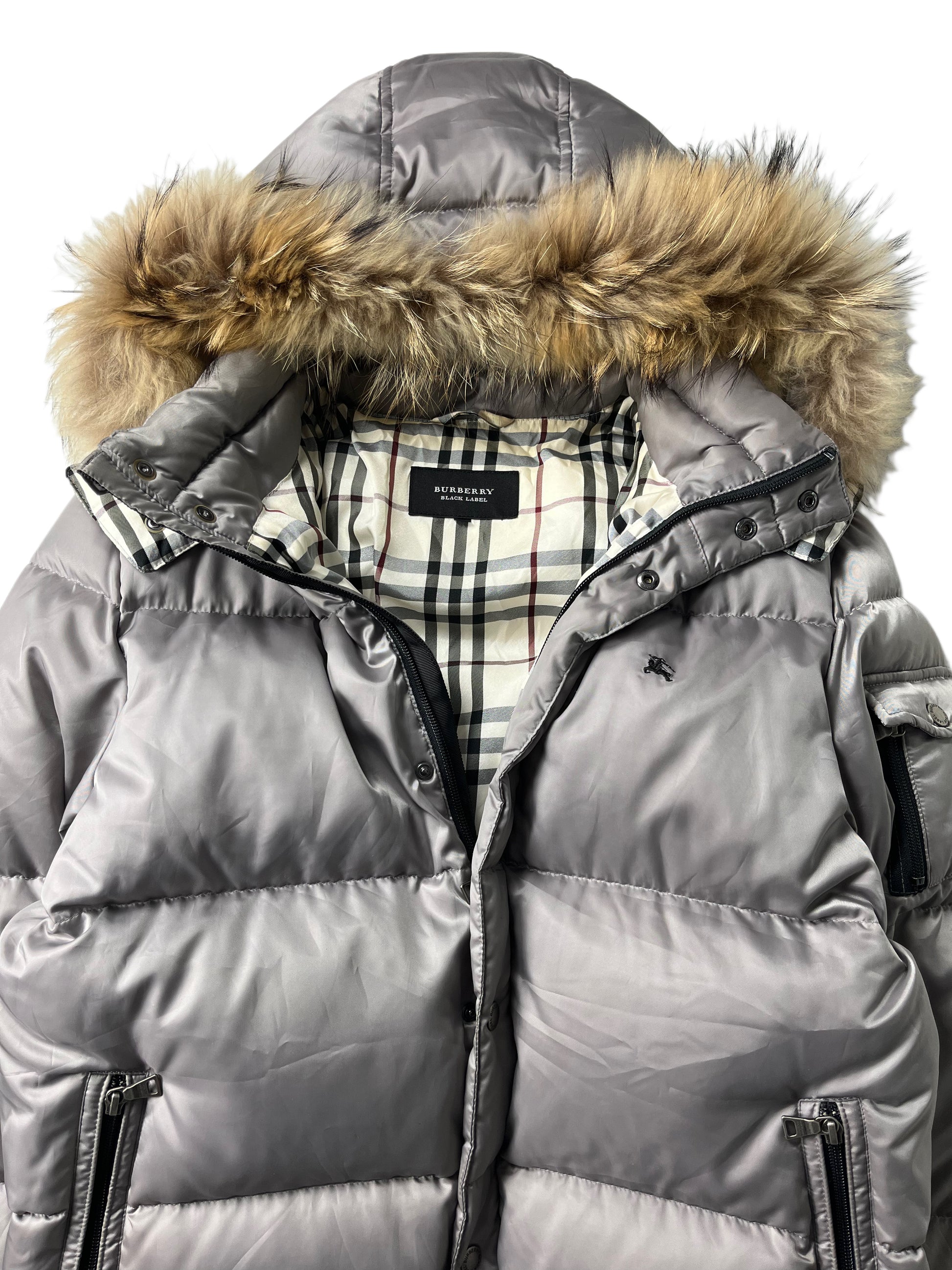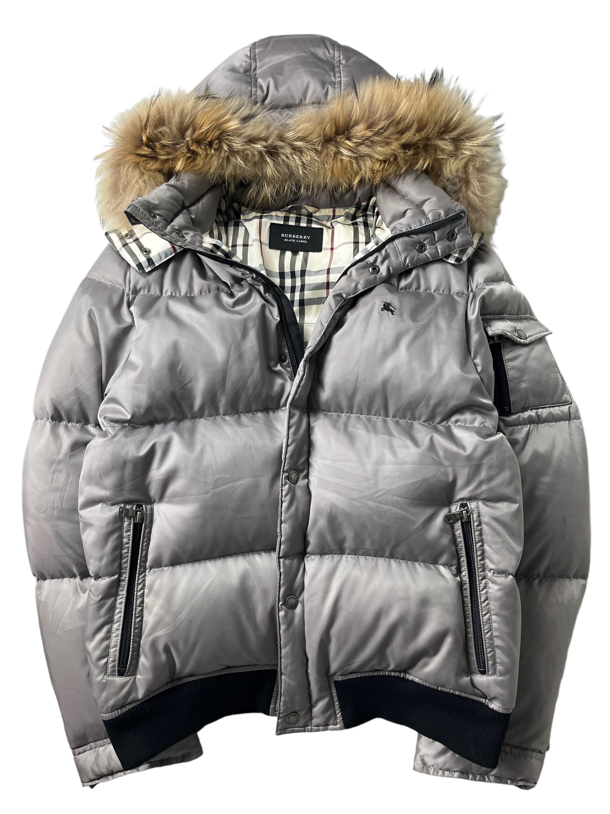 00’s BURBERRY made in Japan real fur down jacket (L/XL) - silver grey