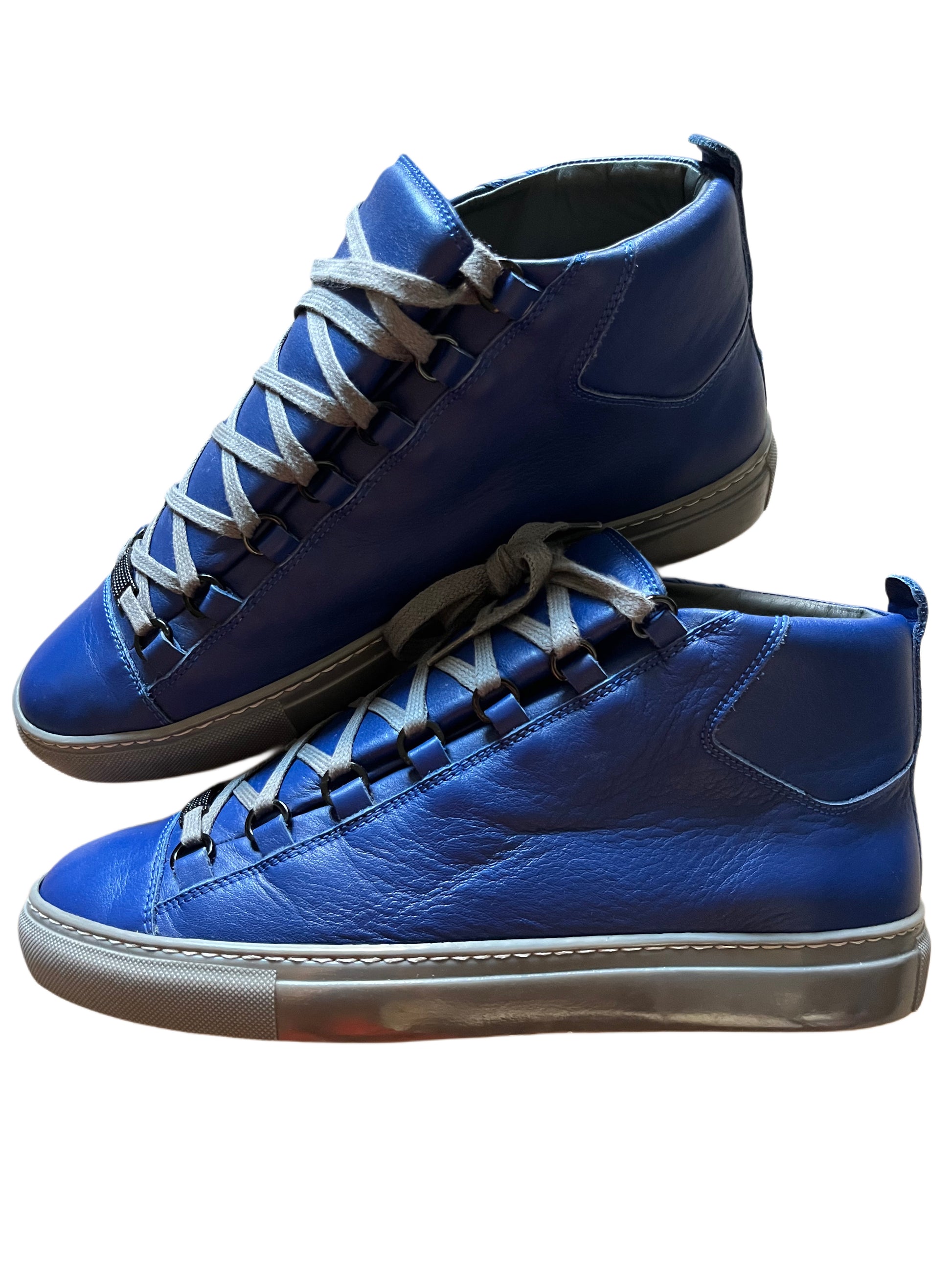 BALENCIAGA ARENA HIGH-TOP BLUE LEATHER SNEAKERS
