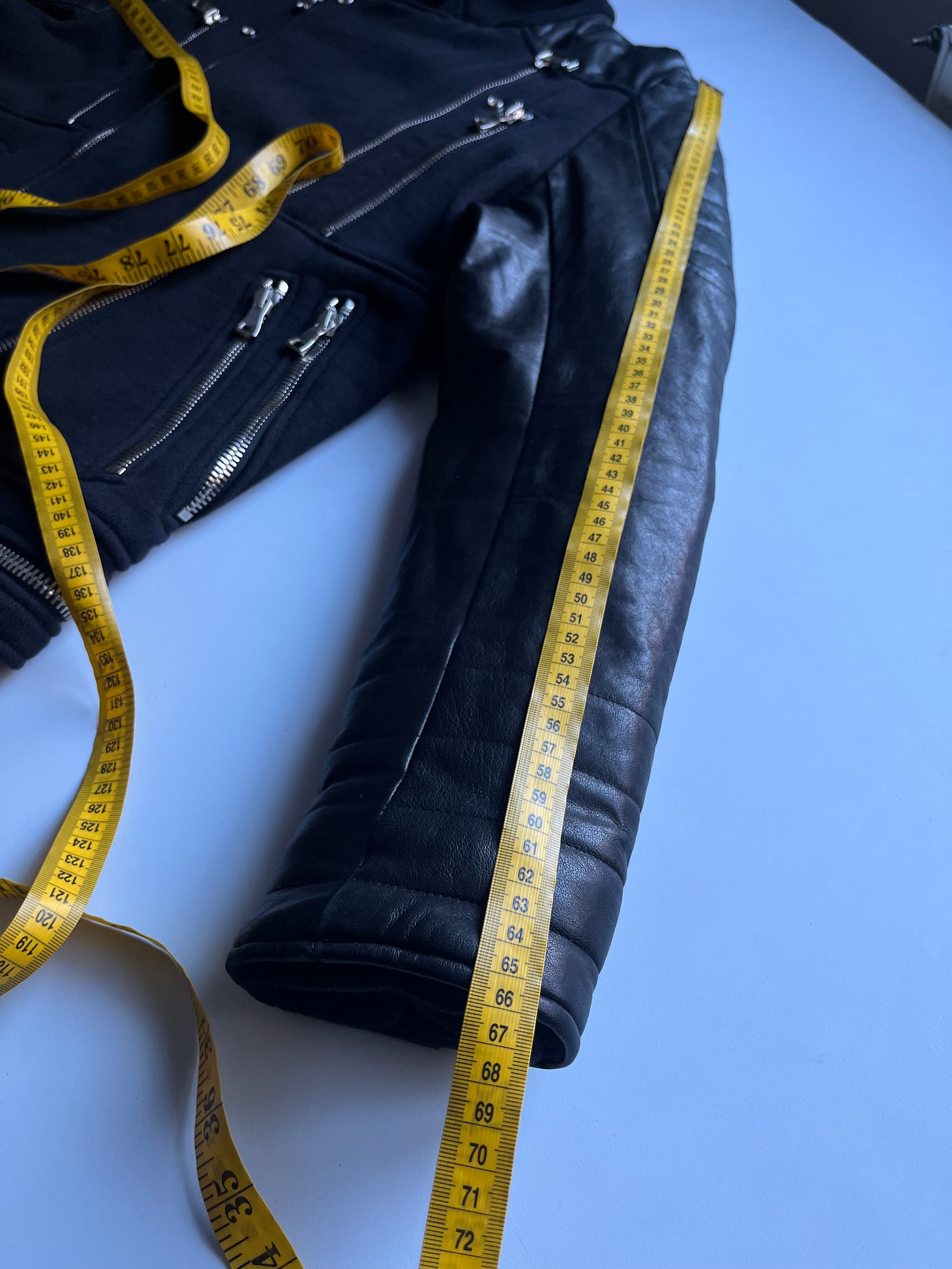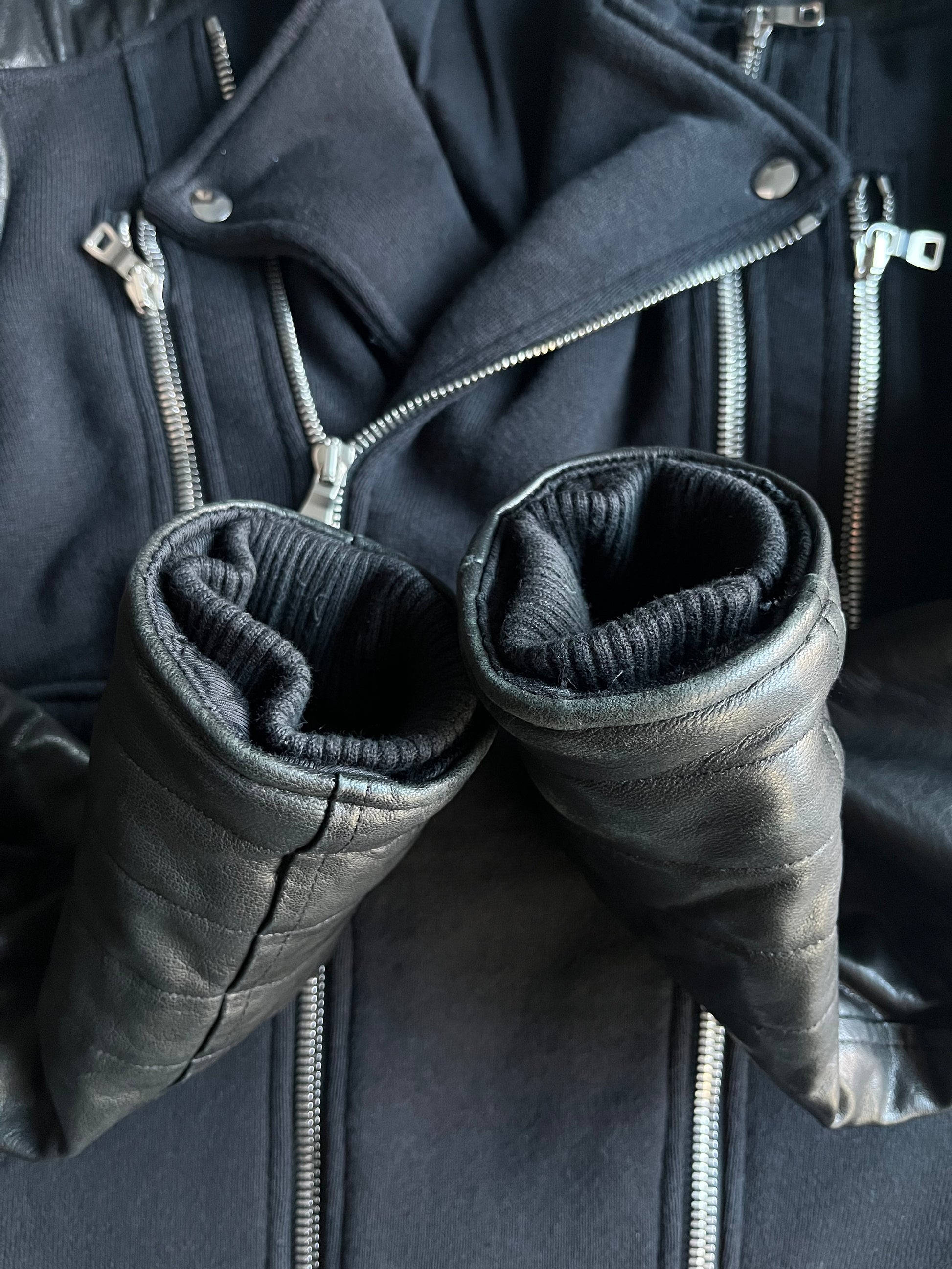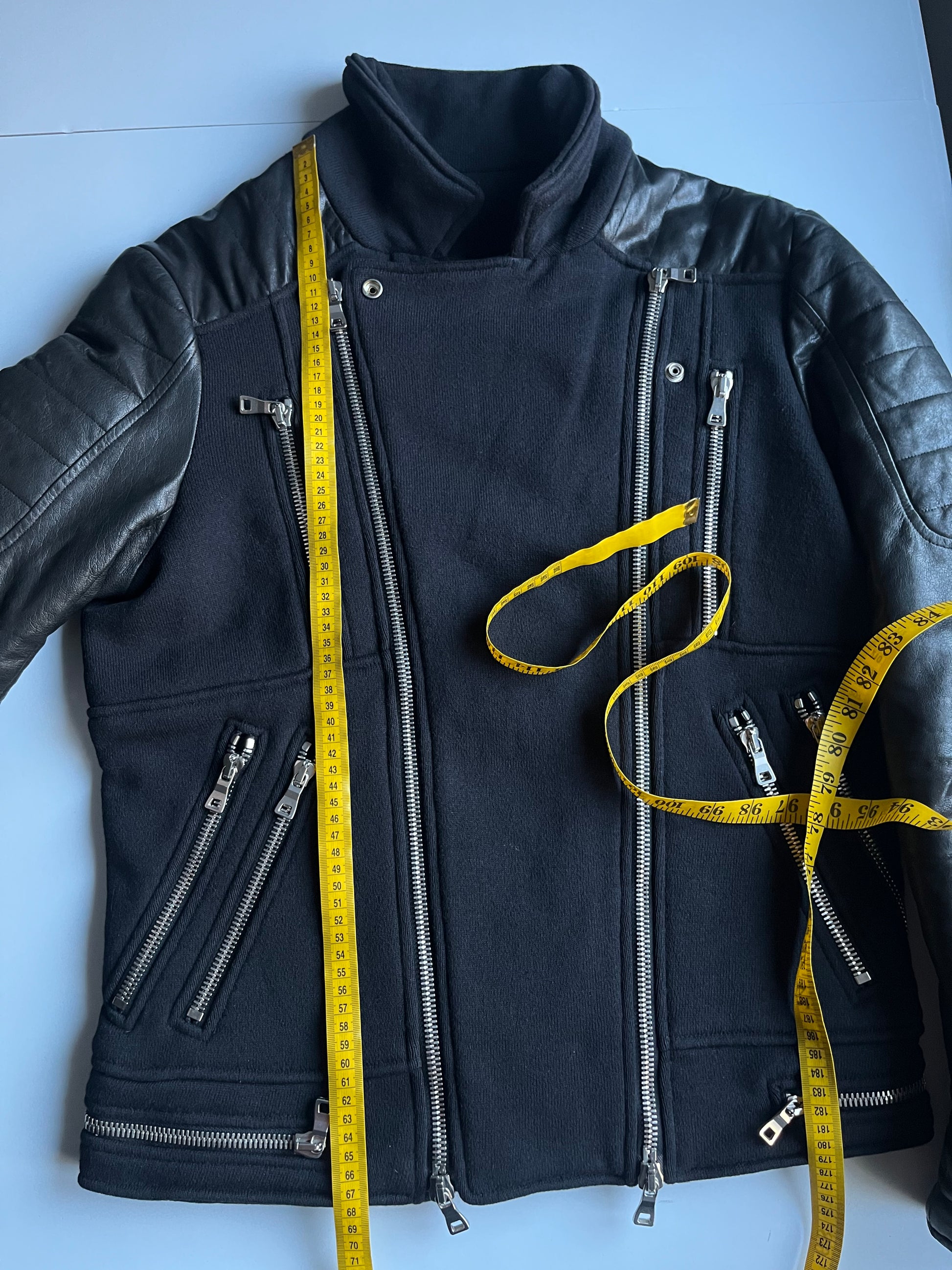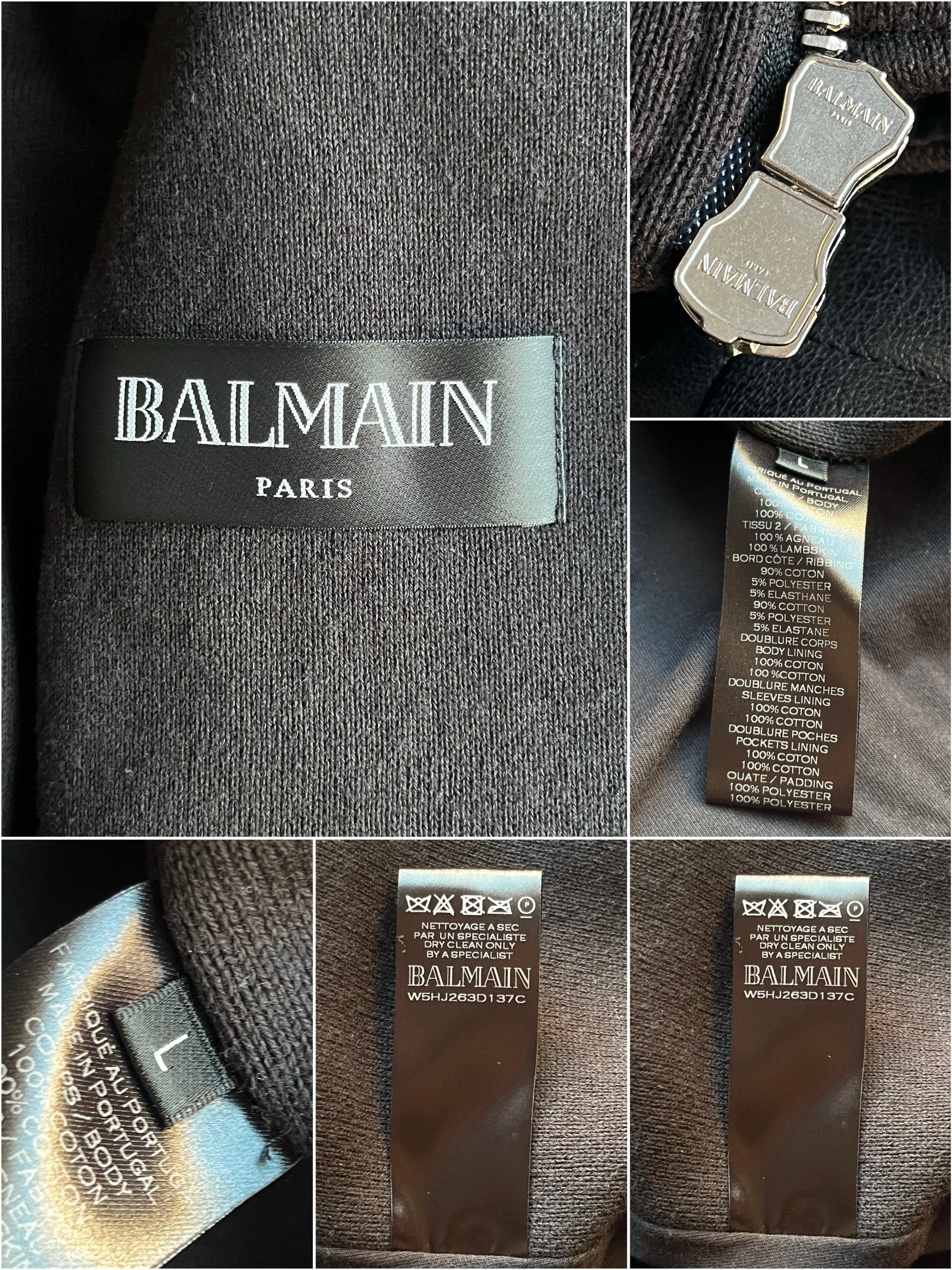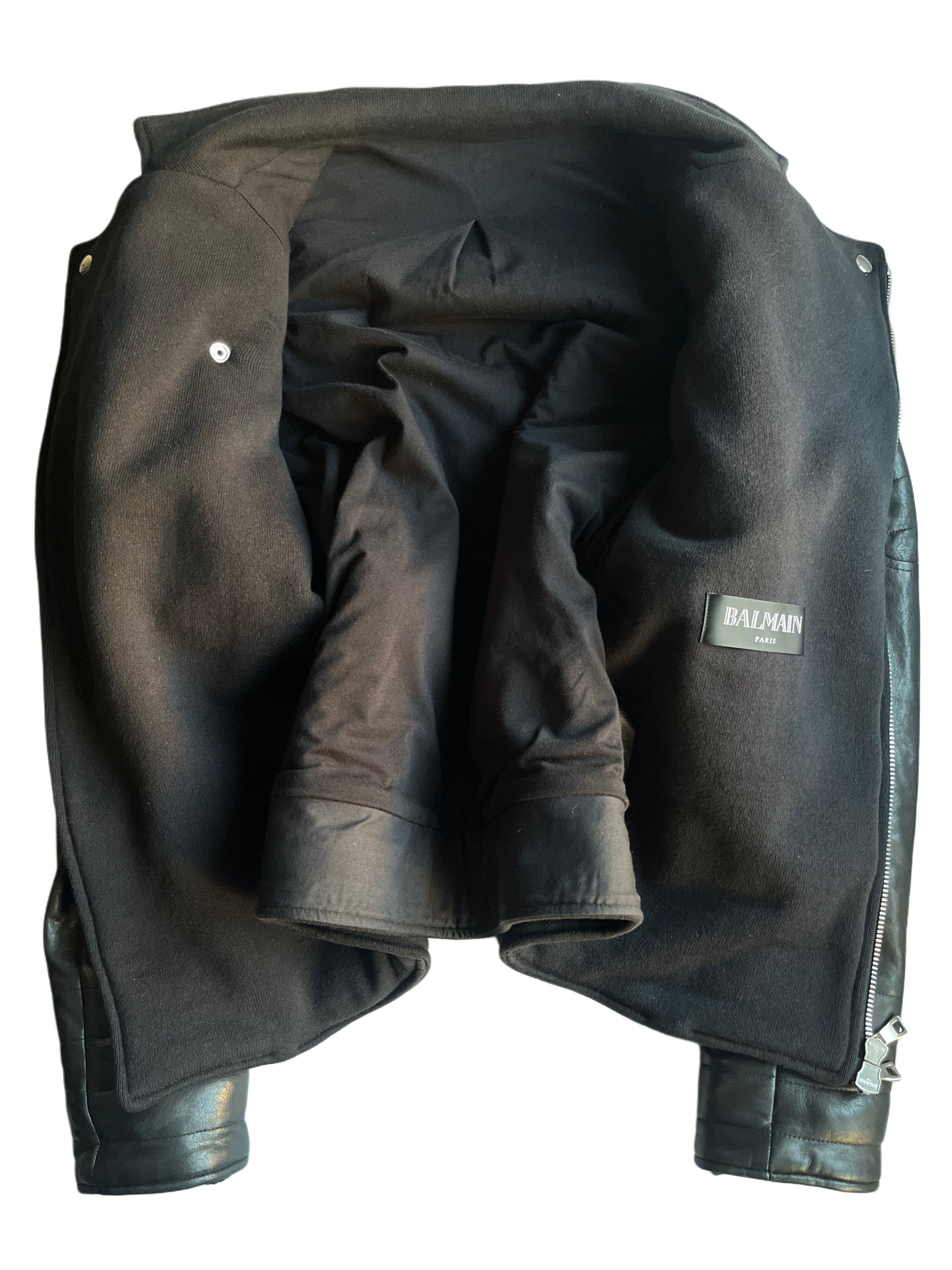 2015 BALMAIN leather & cotton biker jacket - size L - black